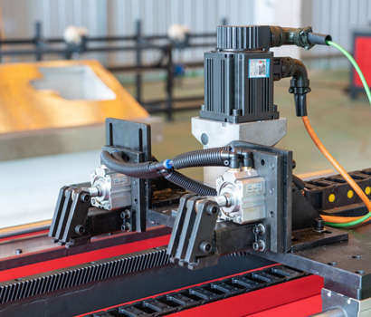 明州智能提出從前面自動拉料,以后 卡為原點計算切割,標(biāo)準(zhǔn)雙卡機的最 后一斷后卡到槍頭的尺寸小于產(chǎn)品成 品尺寸時即可算做成品,實現(xiàn)“零” 尾料,有效提高材料利用率與加工效 率。